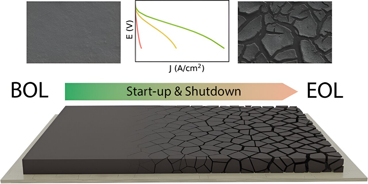 与电池驱动的电动汽车不同,氢动力汽车不需要给电网带来负担,因为可以在电力便宜时生产和储存氢气。对于一些氢动力汽车来说,推进力来自所谓的燃料电池。然而,氢燃料电池汽车的使用寿命相对较短,因为燃料电池组件(如电极和膜)会随着时间的推移而退化。