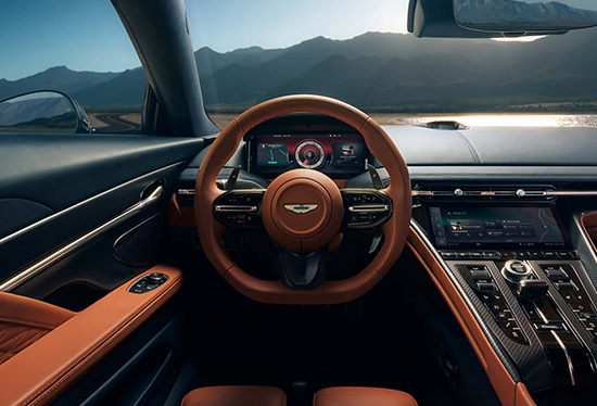 内饰设计十分精致,而黑/棕配色则更是将豪华氛围推到了极致。新车配备全液晶仪表以及内嵌式中控屏,全新信息娱乐系统由阿斯顿·马丁设计开发,支持Apple CarPlay和Android Auto。阿斯顿·马丁DB12在中控台处依旧保留有大量机械按键,能够非常方便快捷地调节排气阀门、悬架软硬以及其它车辆设置。